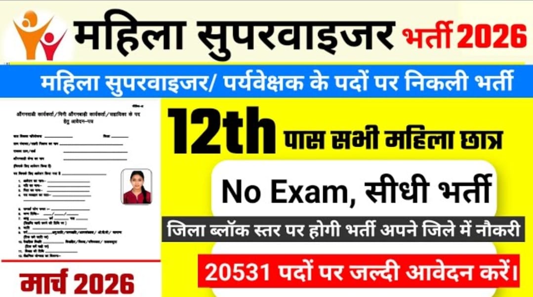 महिला एवं बाल विकास विभाग में निकली ‘महिला सुपरवाइजर’ भर्ती 2026 का सच क्या है? जानें 20,531 पदों, 12वीं पास पात्रता और ‘बिना परीक्षा’ सीधी भर्ती के दावों की वास्तविकता। पूरी जानकारी यहाँ पढ़ें।